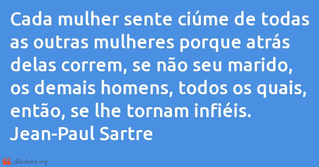 Cada mulher sente ciúme de todas as outras mulheres porque atrás delas correm, se não seu marido, os demais homens, todos os quais, então, se lhe tornam infiéis. Jean-Paul Sartre