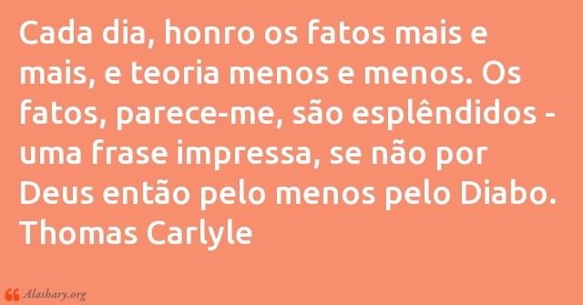 Cada dia, honro os fatos mais e mais, e teoria menos e menos. Os fatos, parece-me, são esplêndidos - uma frase impressa, se não por Deus então pelo menos pelo Diabo. Thomas Carlyle