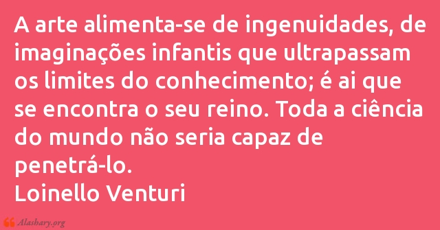 A arte alimenta-se de ingenuidades, de imaginações infantis que ultrapassam os limites do conhecimento; é ai que se encontra o seu reino. Toda a ciência do mundo não seria capaz de penetrá-lo. Loinello Venturi