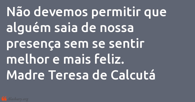 Não devemos permitir que alguém saia de nossa presença sem se sentir melhor e mais feliz. Madre Teresa de Calcutá
