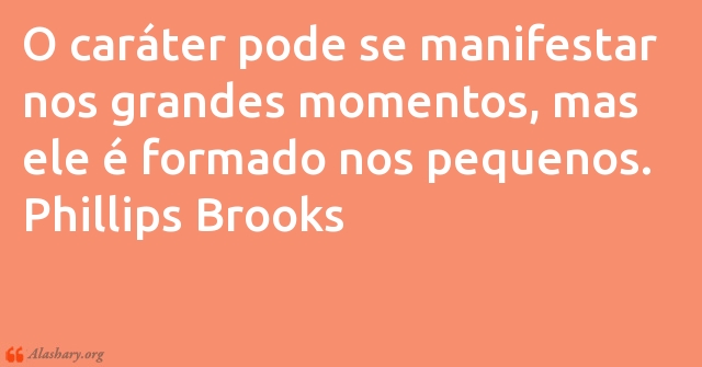 O caráter pode se manifestar nos grandes momentos, mas ele é formado nos pequenos. Phillips Brooks