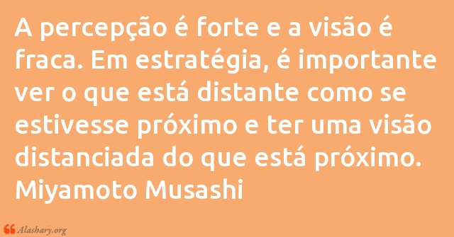 A percepção é forte e a visão é fraca. Em estratégia, é importante ver o que está distante como se estivesse próximo e ter uma visão distanciada do que está próximo.