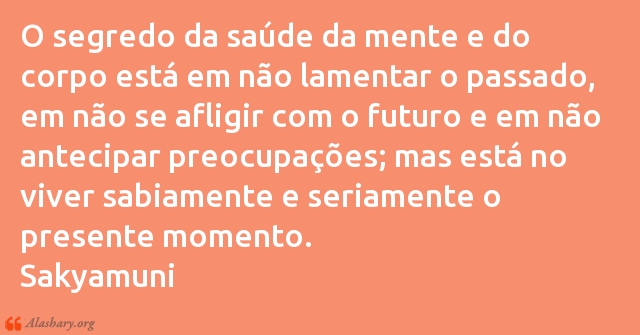 O segredo da saúde da mente e do corpo está em não lamentar o passado, em não se afligir com o futuro e em não antecipar preocupações; mas está no viver sabiamente e seriamente o presente momento.