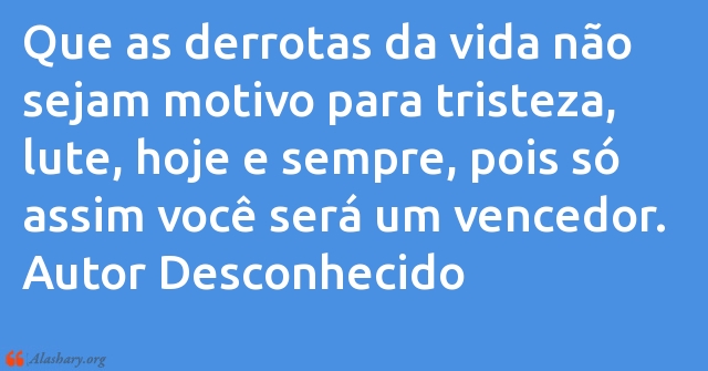 Que as derrotas da vida não sejam motivo para tristeza, lute, hoje e sempre, pois só assim você será um vencedor.