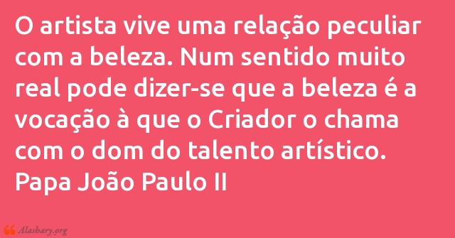 O artista vive uma relação peculiar com a beleza. Num sentido muito real pode dizer-se que a beleza é a vocação à que o Criador o chama com o dom do talento artístico.