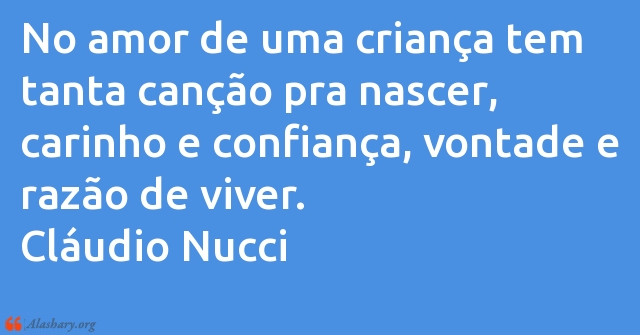 No amor de uma criança tem tanta canção pra nascer, carinho e confiança, vontade e razão de viver.