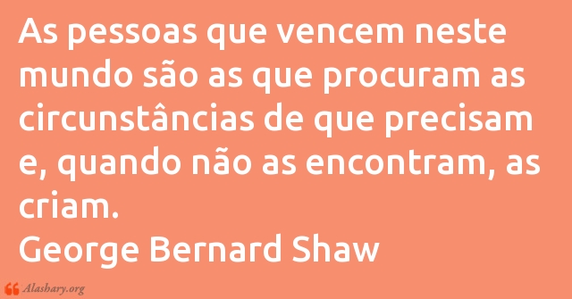 As pessoas que vencem neste mundo são as que procuram as circunstâncias de que precisam e, quando não as encontram, as criam. George Bernard Shaw