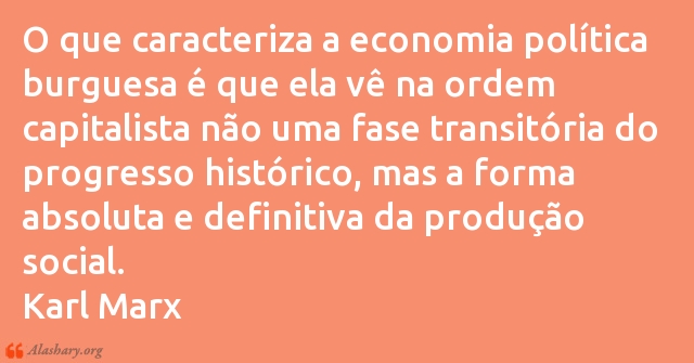 O que caracteriza a economia política burguesa é que ela vê na ordem capitalista não uma fase transitória do progresso histórico, mas a forma absoluta e definitiva da produção social.