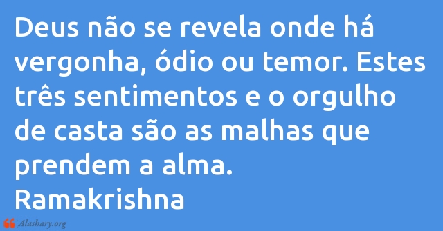 Deus não se revela onde há vergonha, ódio ou temor. Estes três sentimentos e o orgulho de casta são as malhas que prendem a alma.