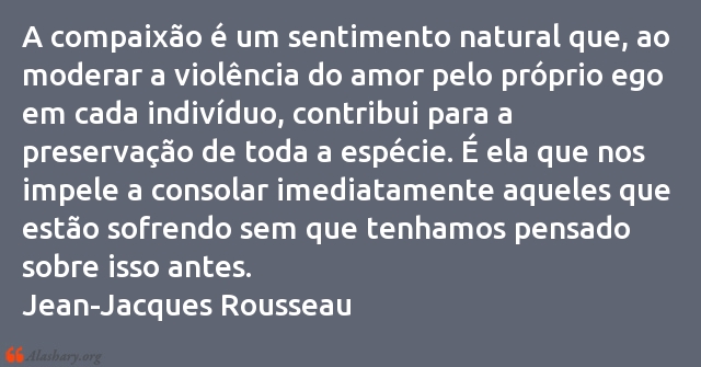 A compaixão é um sentimento natural que, ao moderar a violência do amor pelo próprio ego em cada indivíduo, contribui para a preservação de toda a espécie. É ela que nos impele a consolar imediatamente aqueles que estão sofrendo sem que tenhamos pensado sobre isso antes.