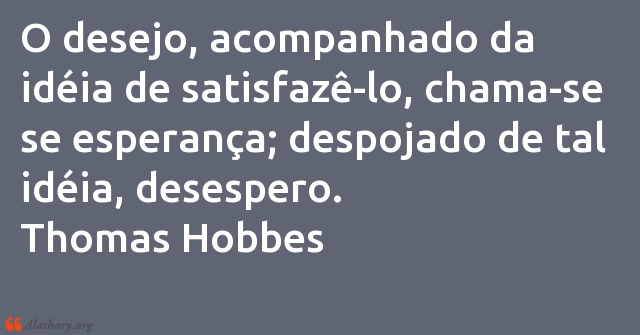 O desejo, acompanhado da idéia de satisfazê-lo, chama-se se esperança; despojado de tal idéia, desespero. Thomas Hobbes