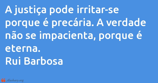 A justiça pode irritar-se porque é precária. A verdade não se impacienta, porque é eterna. Rui Barbosa