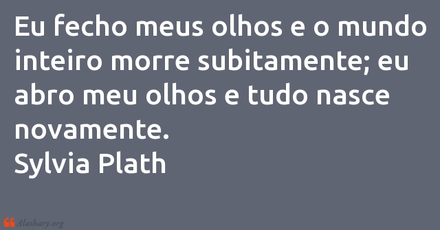 Eu fecho meus olhos e o mundo inteiro morre subitamente; eu abro meu olhos e tudo nasce novamente. Sylvia Plath