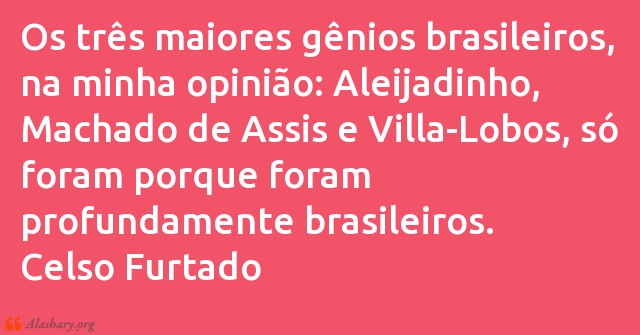 Os três maiores gênios brasileiros, na minha opinião: Aleijadinho, Machado de Assis e Villa-Lobos, só foram porque foram profundamente brasileiros. Celso Furtado