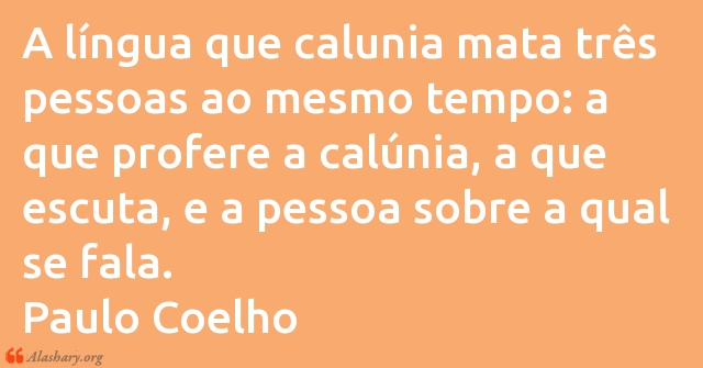 A língua que calunia mata três pessoas ao mesmo tempo: a que profere a calúnia, a que escuta, e a pessoa sobre a qual se fala.