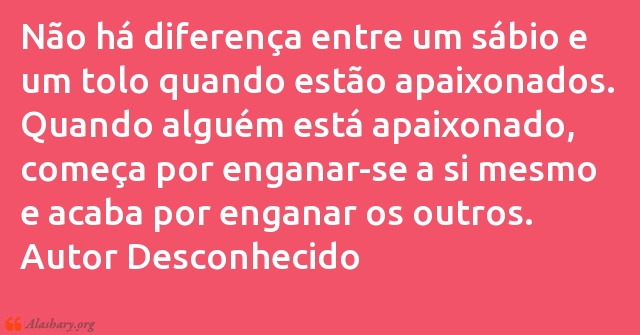 Não há diferença entre um sábio e um tolo quando estão apaixonados. Quando alguém está apaixonado, começa por enganar-se a si mesmo e acaba por enganar os outros.