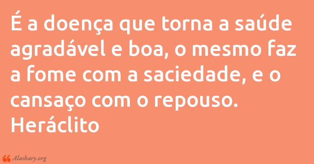 É a doença que torna a saúde agradável e boa, o mesmo faz a fome com a saciedade, e o cansaço com o repouso. Heráclito